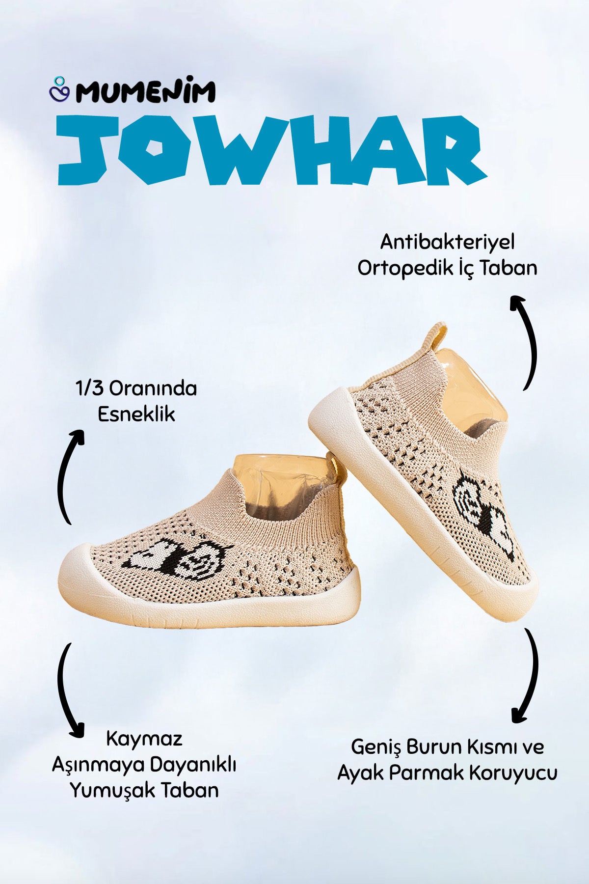 Jowhar Çocuk Bebek Esnek, Hafif Yumuşak Kaymaz Ortopedik Taban Bej İlk Adım Spor Ayakkabı
