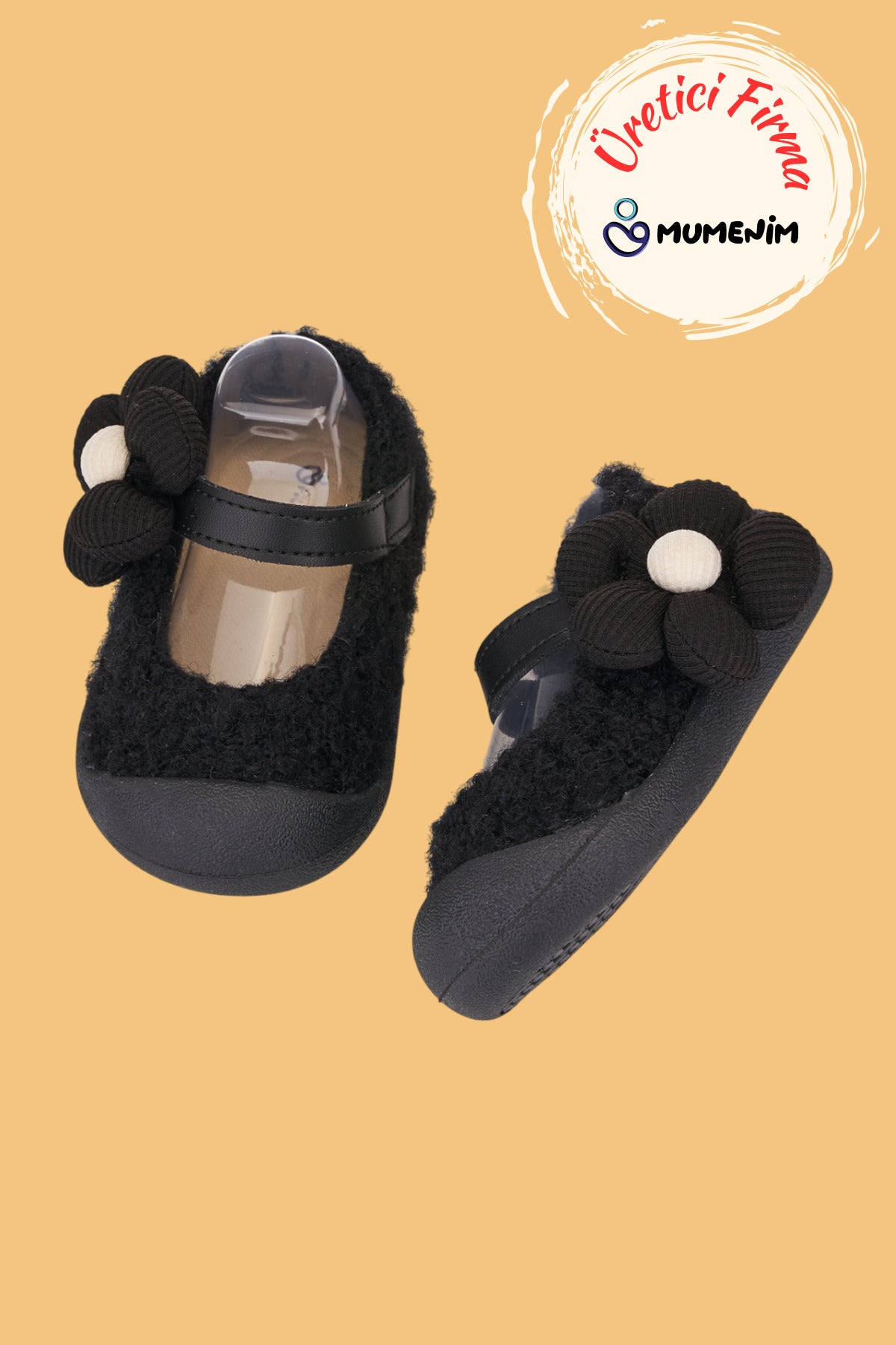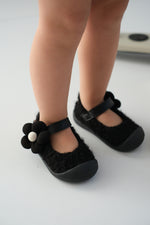 Lebom Kız Bebek Çocuk Siyah Ortopedik Kaymaz Taban Günlük Babet Ayakkabı - Esnek ve Rahat Kalıp