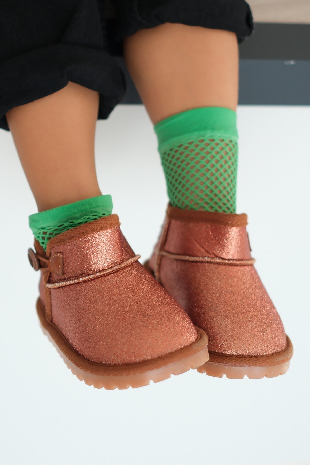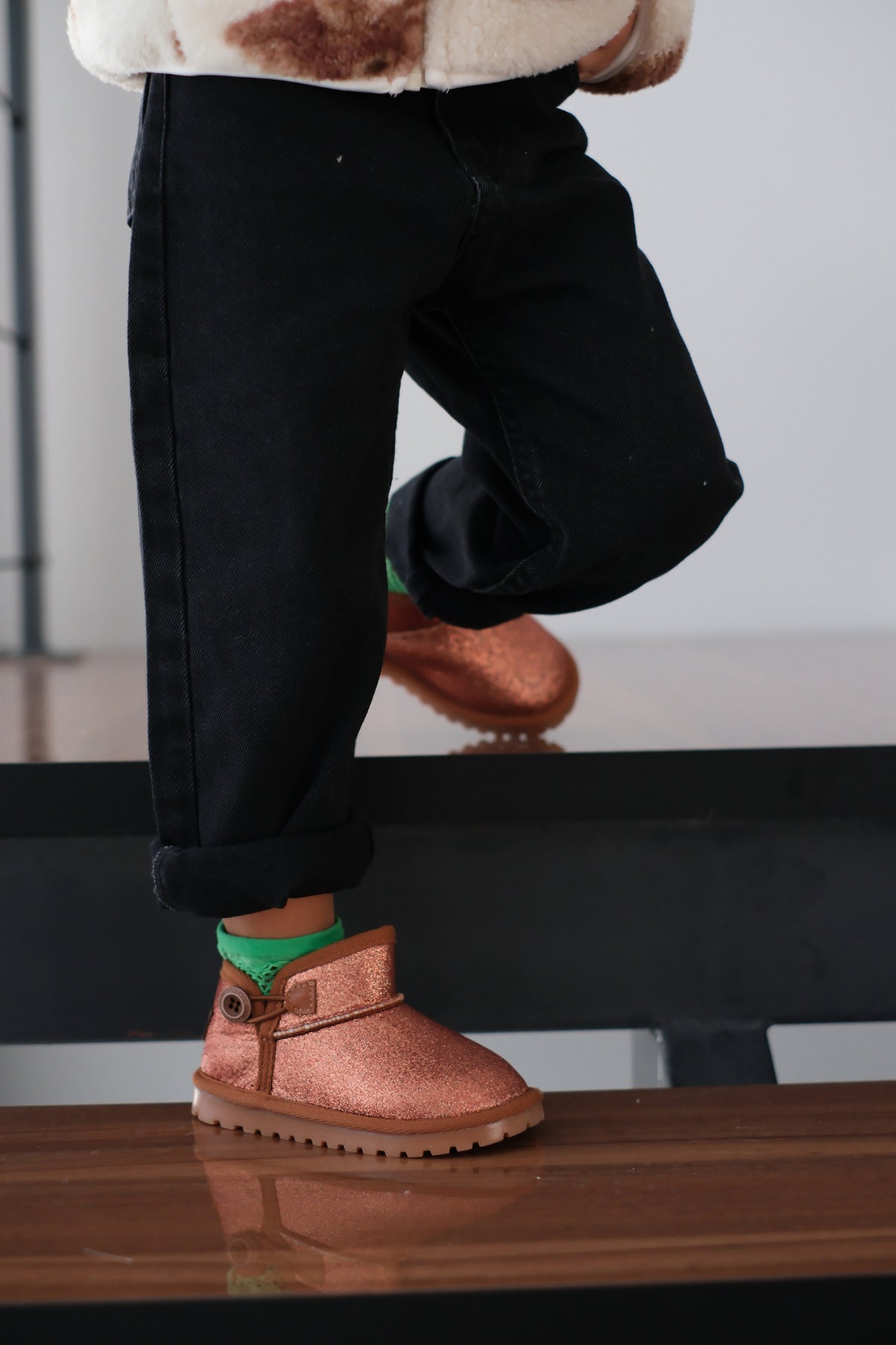 Mumenim Aurora Simli Taba Renk Bot: Kışın Işıltısı Minik Adımlarda!
