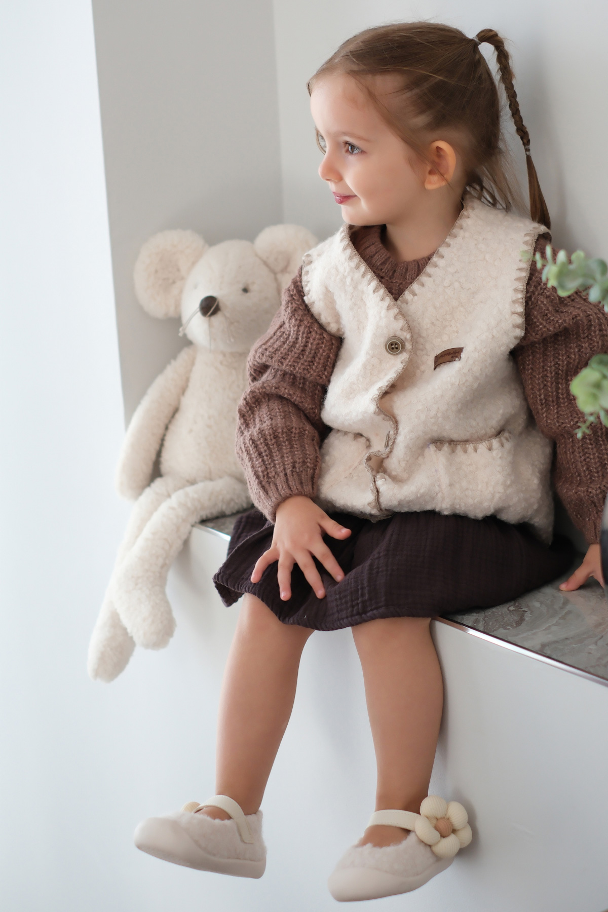 Lebom babet modelimiz, 17-26 numara aralığındaki kız bebeklerin ve kız çocuklarının hassas ayakları için özel olarak tasarlanmıştır. Şık çiçek figür detayı ve sıcacık peluş kürklü yapıya sahip olan babetimiz, kış aylarında ayak sağlığını ve konforunu önceliklendirir.